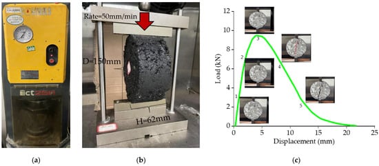 IDEAL-CT test: (a) Ict-Rotary compactor; (b) Actual test diagram; (c) IDEAL-CT test load-displacement curve.