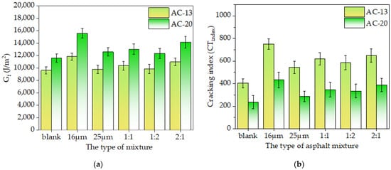 The results of the IDEAL-CT test: (a): Fracture energy; (b): Cracking index.