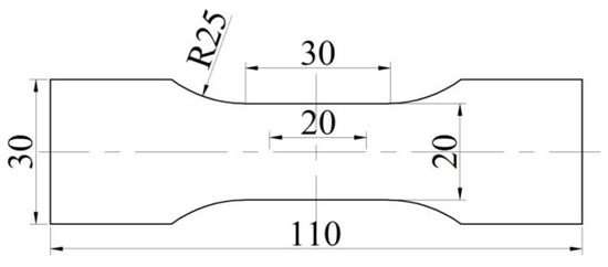 The dimensions of the specimen for room-temperature tensile tests (unit: mm).