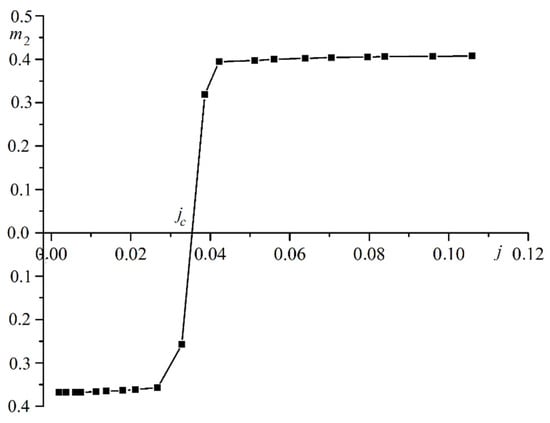This concentration corresponds to the average estimate for metals [31]. An electron at has a spin . Projections of the spin onto the axis are of interest in this model. An electron spin projection can have one of two values (1/2 or −1/2). The interaction between electron spins and atom spins is exchangeable. The Hamiltonian of this interaction equals the sum of the paired exchange interactions of spins.