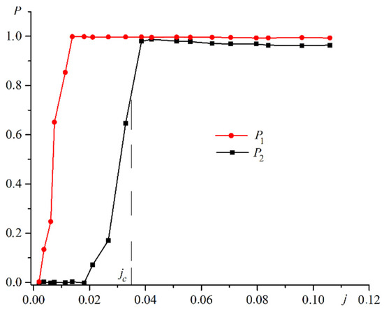 is the cross-sectional area of the conductor. is equal to the area of the films in our system (). is the current flow time. We use one iteration as a unit of time. The current flow time is equal to the number of iterations (). The number of passed electrons ne is equal to the difference in the number of electrons crossing the film boundary in the positive and negative directions. We use the relative magnitude of the current density for uniformity of the model.