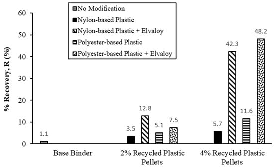 - According to the MSCR test results, the modified binders showed an improvement in their elastic response and rutting resistance. The modified binders showed a higher recovery rate than the base binder. The recovery rate increased with the increase in the dosage of plastic pellets and with the addition of Elvaloy copolymer. The modified binders had a lower Jnr than the base binder. Jnr decreased with the increase in dosage of plastic pellets and with the addition of Elvaloy copolymer.