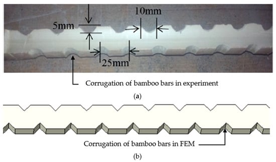Geometry of corrugated bamboo reinforcement: (a) experiment []; (b) FEM.