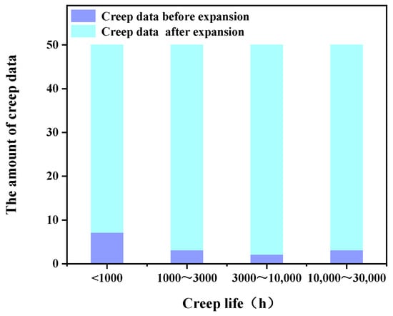 For any material, new or old, there must be one similar, with roughly the same type of elements but a different content of elements. Although the chemical formulae of the two materials differ, the creep rupture life data of the two materials can be fused via machine learning models because the two materials share the same variables, such as temperature, stress, chemical elements, etc. However, this method has a serious shortcoming: due to the long time and high cost of performing high-temperature creep tests, very limited creep data are obtained through the test. As a result, the distribution of creep data in various data intervals is often unbalanced, and most of the data are concentrated in a certain interval. Although the sample size of a training set is expanded via the introduction of data from similar materials, the prediction accuracy of machine learning models is still not high enough.