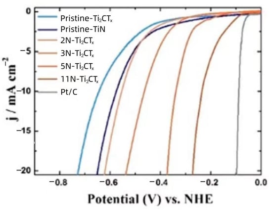 - Sun, J.; Kong, W.; Jin, Z.; Han, Y.; Ma, L.; Ding, X.; Niu, Y.; Xu, Y. Recent advances of MXene as promising catalysts for electrochemical nitrogen reduction reaction. Chin. Chem. Lett. 2020, 31, 953–960. [Google Scholar] [CrossRef]