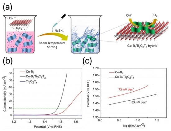 - Liu, J.; Chen, T.; Juan, P.; Peng, W.; Li, Y.; Zhang, F.; Fan, X. Hierarchical Cobalt Borate/MXenes Hybrid with Extraordinary Electrocatalytic Performance in Oxygen Evolution Reaction. ChemSusChem 2018, 11, 3758–3765. [Google Scholar] [CrossRef] [PubMed]