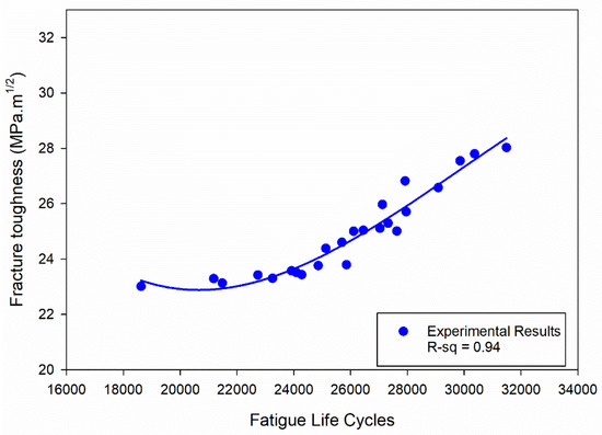 where X represents the number of fatigue life cycles. This polynomial cubic curve, with coefficients derived from the curve fitting approach, allows for the accurate prediction of fracture toughness values at varying fatigue life cycles.