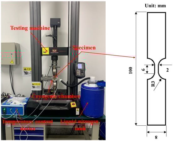 Existing research shows that ultra-low temperatures play a very good strengthening and toughening role in face-centered cubic (FCC) metal [31,32,33]. The total elongation and strain hardening index of the aluminum alloy sheet at liquid nitrogen temperature were almost enhanced one time more than that at room temperature [34]. Rokilan and Mahendran [35] found that the reducing temperature increased the yield and ultimate strengths of high-strength cold-rolled steel G550 in a temperature range of 20–70 °C. Xi et al. [36] found that decreasing the low temperature from 20 to −165 °C significantly increased the yield and ultimate strengths of HSS Q690E and Q960E materials. Zang et al. [37] found that a breakthrough in the cryogenic ductility of titanium alloys was achieved, with elongation to fracture being up to 20.0% at 20 K and 29.0% at 77 K without significantly sacrificing strength. Levings and Sritharan [38] found that the yield strength and ultimate strength of ASTM A706 [39] Grade 420 steel increased by 5.1% and 6.3%, respectively, at −40 °C. Yan et al. [40] found that the yield strength, Young’s modulus, ultimate strength, and fracture strain increased with decreasing temperature. Techniques such as ultra-low temperature stamping [41,42], ultra-low temperature deep drawing [43], and ultra-low temperature gradient forming [44] have been implemented to improve the forming limit by enhancing ductility at ultra-low temperatures.