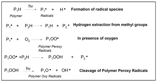 - Allen, N.S.; Edge, M.; Hussain, S. Perspectives on yellowing in the degradation of polymer materials: Inter-relationship of structure, mechanisms and modes of stabilisation. Polym. Degrad. Stab. 2022, 201, 109977. [Google Scholar] [CrossRef]