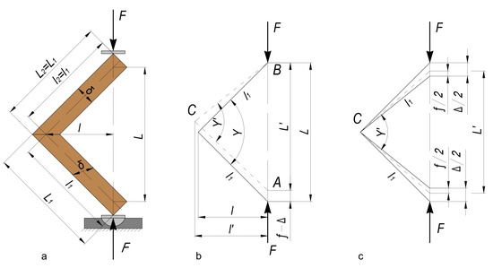 The deformation of the joints under the compression bending test causes changes in both the right angle between the joint arms and the bending arm, l, of the forces (Figure 6).
