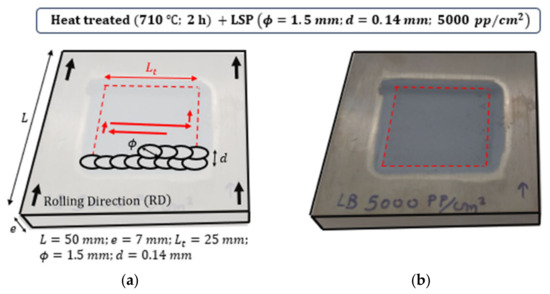 The present study starts with a theoretical background analysis providing solid arguments that justify the relevance of considering the viscous drag phenomenon in LSP (Section 2). Hence, the developed methods for its precise simulation and experimental validation are described (Section 3). Significant differences are presented between LSP-treated materials with low and high yield stresses. Finally, the nature of the computed plastic strains is studied with the application of concentric pressure pulses (Section 4.1) and in realistic high-density LSP treatments, in which extended areas are irradiated for numerical–experimental validation (Section 4.2).