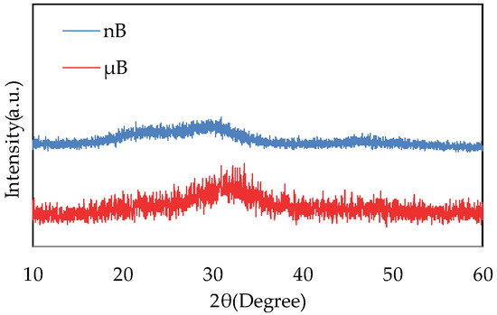 The XRD patterns of µB and nB show no sharp peaks, indicating that they have an amorphous structure (Figure 4).