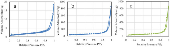 N2 adsorption-desorption isotherms of the sample particles. ((a) µB; (b) nB; (c) Z).