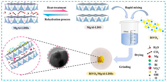 Schematic diagram showing the synthesis of BiVO4/MgAl–LDHs.