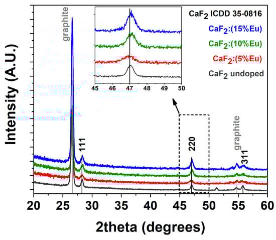 - Wang, F.; Fan, X.; Pi, D.; Wang, M. Synthesis and luminescence behavior of Eu3+-doped CaF2 nanoparticles. Solid State Commun. 2005, 133, 775–779. [Google Scholar] [CrossRef]