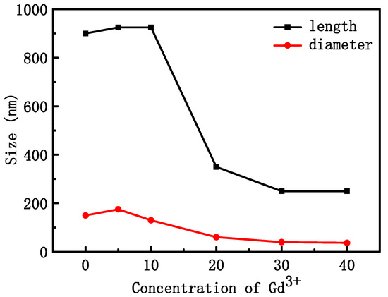 Average length and diameter of NYTYG NCs with different Gd3+ concentrations.