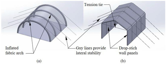 (a) Inflatable arch-supported structure; (b) proposed inflatable structure supported with drop-stitch panels.