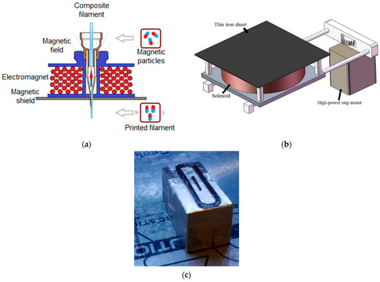 - Nagarajan, B.; Aguilera, A.F.E.; Wiechmann, M.; Qureshi, A.J.; Mertiny, P. Characterization of magnetic particle alignment in photosensitive polymer resin: A preliminary study for additive manufacturing processes. Addit. Manuf. 2018, 22, 528–536. [Google Scholar] [CrossRef]