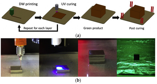 - Shen, A.; Bailey, C.P.; Ma, A.W.K.; Dardona, S. UV-assisted direct write of polymer-bonded magnets. J. Magn. Magn. Mater. 2018, 462, 220–225. [Google Scholar] [CrossRef]