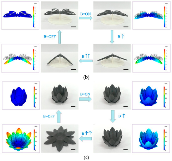 - Zhang, F.; Wang, L.; Zheng, Z.; Liu, Y.; Leng, J. Magnetic programming of 4D printed shape memory composite structures. Compos. Part A Appl. Sci. Manuf. 2019, 125, 105571. [Google Scholar] [CrossRef]