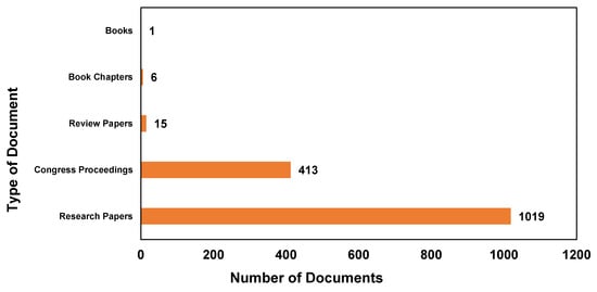 “Research papers” and “congress proceedings” often constitute the largest quantity of published documents in a given field due to their depth and rigor because research papers typically contain completed research that has undergone extensive review by experts in the field through a blind reviewing process. This makes them a reliable source of detailed and rigorous information, leading to a high volume of such publications. Furthermore, the growth in science is driven by the publication of novel ideas and experiments, most usually in peer-reviewed journals. This leads to an increase in the number of published papers over time.