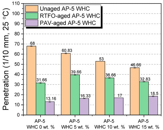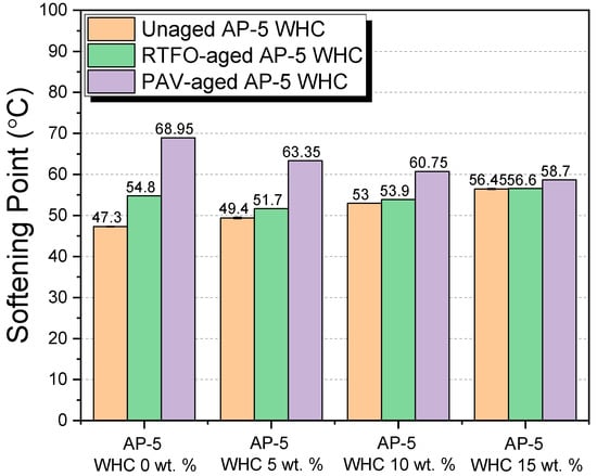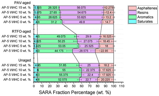 For data reliability, five samples were analyzed for each WHC–asphalt mixture, and each sample underwent Iatroscan analysis four times, ensuring accurate results [24].