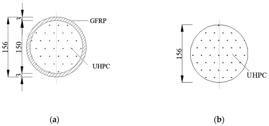 Section diagram of the specimen (a) GFRP tube UHPC composite column cross-section. (b) Cross-section of the UHPC comparison column.