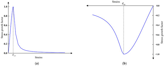 where , . is the peak strain corresponding to the tensile stress–strain curve of concrete, is the stress value corresponding to the peak strain of the tensile stress–strain curve of concrete, according to the experimental results of this material property.