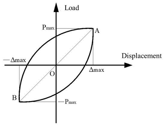 In this paper, the equivalent stiffness [27] is used to describe the stiffness change. The equivalent stiffness is calculated as shown in Figure 14. The equivalent stiffness is that the positive and negative peak points of the hysteretic curve of the first cycle of each stage are connected by AB, and the slope of the AB connection line is the equivalent stiffness.