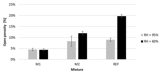 The specimens were placed in a vacuum chamber on line supports. The air pressure was decreased to 2 ± 0.7 kPa. After 2 h, water was gradually inserted into the chamber without increasing the pressure, until the specimens were fully submerged. After another hour, the pressure was slowly increased up to atmospheric pressure. The mass increase was measured for the first time 24 h after submersion had started. The specimens were deemed fully saturated when the mass did not significantly increase (<0.1 m%) after 24 h. At this point, the hydrostatic weight and the saturated mass were obtained. Based on the results, the open porosity (3) was obtained.