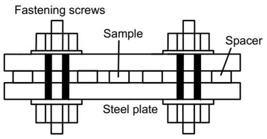 In addition, the compression stress of the silicone rubber sample is applied by placing the silicone rubber O-ring in the compression simulators. It is composed of a steel plate, stopper, bolt, and nut. Silicone rubber samples and stoppers are placed in the middle of the steel plate, and the pressure is provided by fastening bolts and nuts. The height of the stopper is used to control the compression amount of silicone rubber samples, which is shown in Figure 2.
