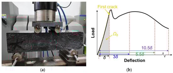 (a) Four-point flexural toughness test. (b) Calculation method of toughness indices.
