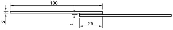 Anodised AL6060-T6 aluminium alloy substrates were used in this work to build the SLJs. The adherend elastic properties of this material are displayed in Table 2, and the general geometry of the aluminium joints manufactured is illustrated in Figure 1, where the adhesive layer was set to be 0.5 mm thick with an overlap length of 25 or 50 mm.