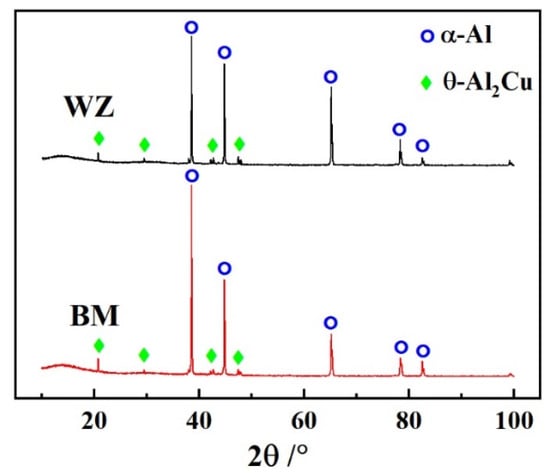 Figure 7 represents the XRD result of WZ and BM. The results indicate that WZ and BM consist of α-Al and θ-Al2Cu precipitate. The formation of θ-Al2Cu precipitate plays a strengthening role in the joints [14].