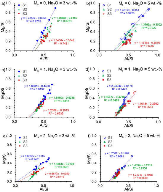 - Walkley, B.; San Nicolas, R.; Sani, M.-A.; Bernal, S.A.; van Deventer, J.S.J.; Provis, J.L. Structural evolution of synthetic alkali-activated CaO-MgO-Na2O-Al2O3-SiO2 materials is influenced by Mg content. Cem. Concr. Res. 2017, 99, 155–171. [Google Scholar] [CrossRef]