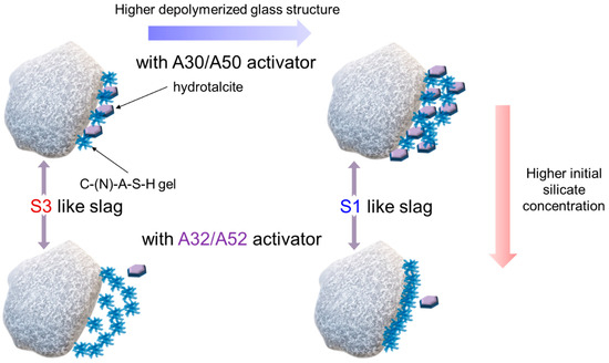 - Wang, S.-D.; Scrivener, K.L. Hydration products of alkali activated slag cement. Cem. Concr. Res. 1995, 25, 561–571. [Google Scholar] [CrossRef]