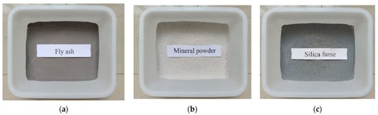 Different types of mineral admixtures: (a) fly ash; (b) mineral powder; (c) silica fume.