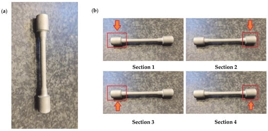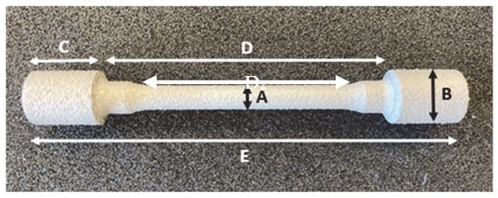 Samples were manufactured with a circular cross section and a central part standardized with a constant section to submit them to tensile testing. The shape of the ending sections of the specimen facilitates fastening into the universal machine jaws (Figure 3).