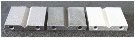The obtained-as-designed SLM consolidated metal parts with pipes and corners, the appearance of an aluminum sample before/after the post-treatment, and a sample which has not been treated with the desmutting step are shown in Figure 5.