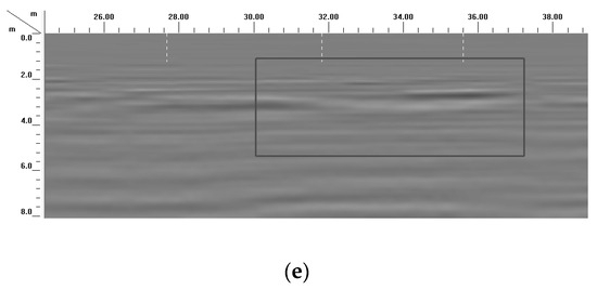 The picture of ground penetrating radar after grouting: (a) 5#, (b) 4#, (c) 3#, (d) 2#, (e) 1#.