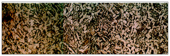 Sivasankari, R. et al. [15] observed a wide Light Band (LB) zone, along the weld line, in the microstructure of the MIAB-welded carbon steel tubes of 44 mm OD and 4.5 mm thickness, the phenomenon being attributed to the lower current (600 A) applied during upsetting. Incomplete homogenization and upsetting cause chemical heterogeneity that results in decarburization during the phase transformation. A higher arc rotation increases the melting, and, consequently, the widening of the LB zone. Moreover, due to increasing the ferritic structure content in the weld, the LB zone is characterised by lower tensile strength. Welds, made with higher arc rotation and lower current applied during upsetting, have a wider LB zone and may fracture at the interface during the tensile test.