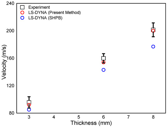 Penetration velocity based on the thickness of the plate according to analysis models.