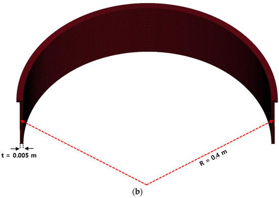 Blade containment case model for ballistic impact analysis: (a) aluminum 6061 for aircraft engine case; (b) analysis model of the aluminum 6061 for aircraft engine case.