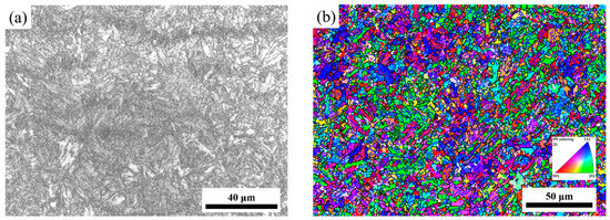 The images of microstructure of experimental steel: (a) OM; (b) IPF map.