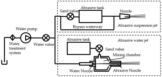 System diagram of abrasive suspension jet and abrasive water jet.