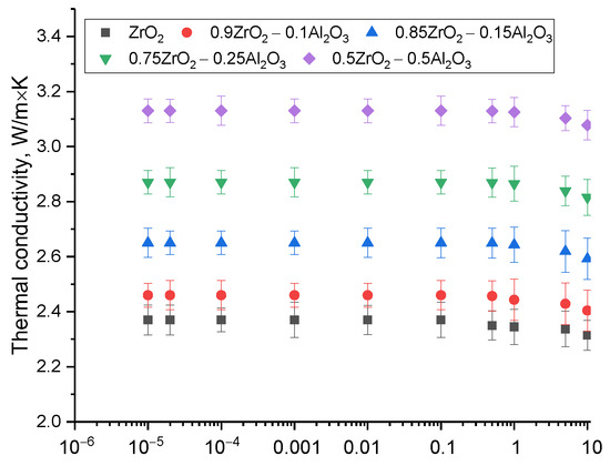 Evaluation results of the thermal conductivity variation of (1 − x)ZrO2–xAl2O3 ceramics.