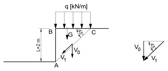 An example of the application of kinematically admissible methods can be found in the work of [1], which analyzed the passive pressure acting on the retaining wall, which results from the operation of machinery during earthworks, as well as in the work of [31], in which the stability of slopes was estimated based on the analysis of the equilibrium of curved slices.