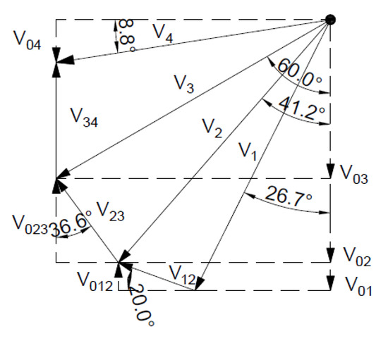 Figure 20 shows the slip lines and velocities of each block, as well as the forces acting on the slip lines, whose geometric parameters for the associated flow rule are given in Table 4.