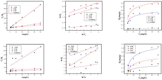 | Isotherm Model | Parameters | A-BC | B-BC | C-BC | D-BC | E-BC | F-BC |