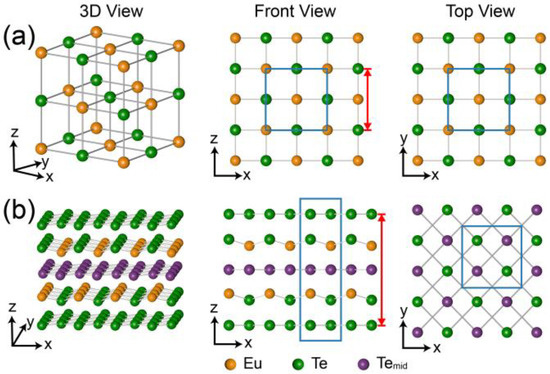 - Cai, X.; Lu, Z.; Xu, Z.; Meng, F.; Zhang, Q.; Gu, L.; Feng, J.; Ji, S.-H.; Li, N.; Chen, X. Growth of (111)-orientated GdTe and TmTe thin films by van der Waals molecular beam epitaxy. J. Phys. Chem. C 2021, 125, 15465–15471. [Google Scholar] [CrossRef]